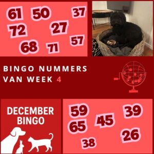 Terug naar overzicht Nieuws Bingo week 4 Hierbij nogmaals de cijfers van de bingo van week 4. Controleer goed of u alle cijfers juist heeft genoteerd.